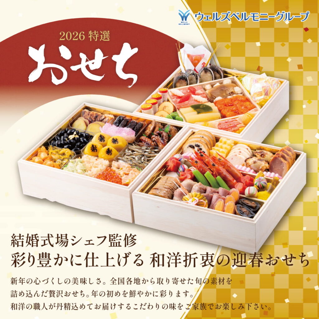 徳島の結婚式場「ブランアンジュ」をはじめ、香川・徳島で多彩なウェディングを手がけるウェルズベルモニーグループ。そのセントラルキッチンであるウェルズキッチンが監修した、毎年大好評の「特選おせち料理」の予約受付がスタートしました。